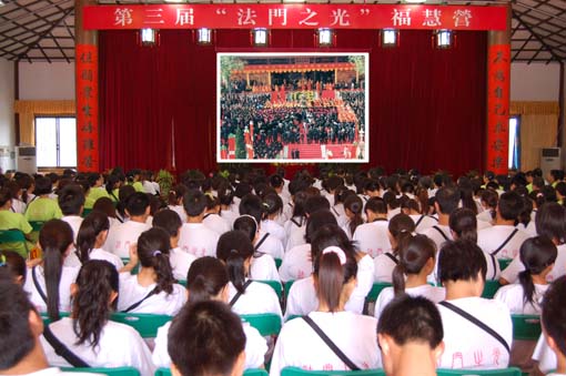 《业果法则》讲座后是影片《佛指舍利台湾行》赏析,由佛学院仁度法师带领观看。影片记录了2002年法门寺佛陀真身指骨舍利赴台湾供奉朝拜的真是历程,展示了佛宝在台湾受到无上尊崇礼拜的盛况。