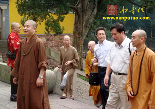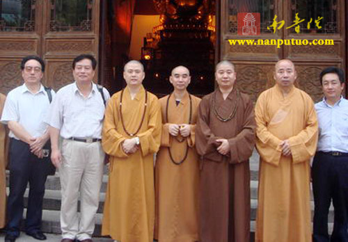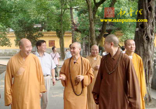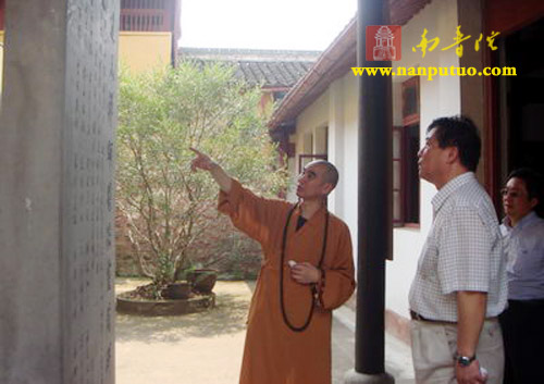 2008年7月25日上午,南普陀寺修建性详细项目组考察团在厦门市佛教协会会长、我寺方丈则悟大和尚的带领下来到天童禅寺,同行的有厦门市统战部副部长、民宗局党组书记陈建德,厦门市民宗局蔡永华副局长、黄镇辉处长,我寺慧然法师、传明法师、法尊法师、圆满法师,南普陀寺实业社曾全民主任,厦门市规划院唐师可、郭竞艳等12人。宁波市佛教协会会长、天童禅寺方丈诚信大和尚在大鉴堂热情接待了则悟大和尚一行。