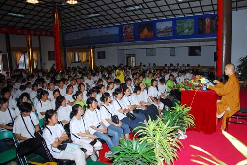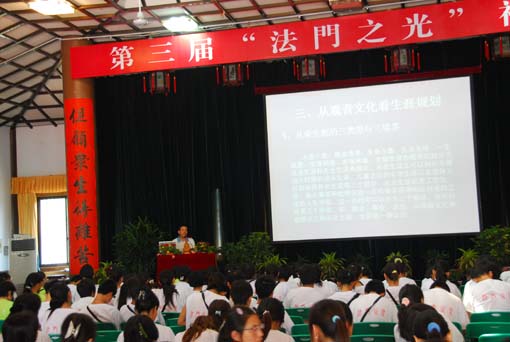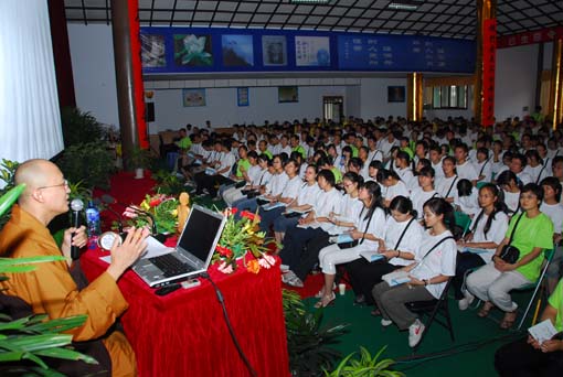 2008年7月18日上午8时30分,在悠扬的佛乐中,悟道法师步入法堂,主题为《认识佛教》的讲座正式开讲。悟道法师以生动的举例和精彩的语言博得了学员们的阵阵掌声,同时也使学员们对佛教的认识在欢声笑语中不断清晰。