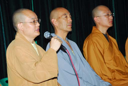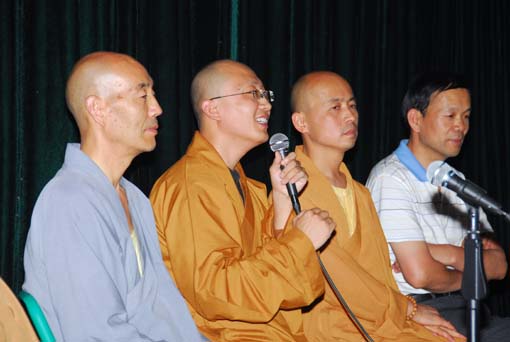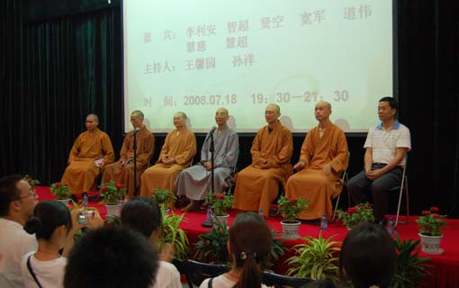 主席台成员:依左次为:慧慈法师、道伟法师、贤空法师、智超法师、慧超法师、宽军法师、李利安教授。