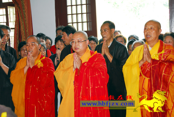 湖北省佛教协会会长正慈法师(中)、大冶市佛教协会常务副会长果慧法师(左)、大冶市副会长