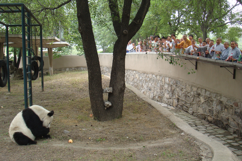 2008年7月29日上午,天津佛教慈善功德基金会僧人及居士60余人前往天津动物园,续养国家一级保护动物大熊猫,资助国宝真如4万元。十年来,我们经常来到这里,近距离的与动物们交流沟通,建立了深厚的感情,为保护人类的朋友、维护生态平衡作出了佛教徒的贡献。