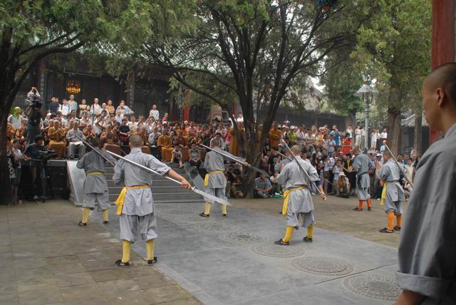 决赛结束后,评委嘉宾以及参赛选手还在少林寺方丈月台前观看了少林功夫表演。