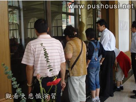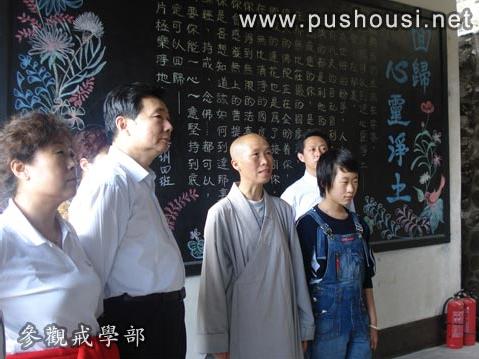 来到法堂,法师们正在为六月十九日观世音菩萨成道日拜大悲忏演习,大家看后非常赞叹。