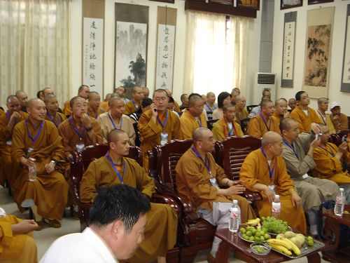 2008年7月20日下午,全国汉传佛教界中青年人士读书班来湘访问团一行90多人参访千年古刹麓山寺。