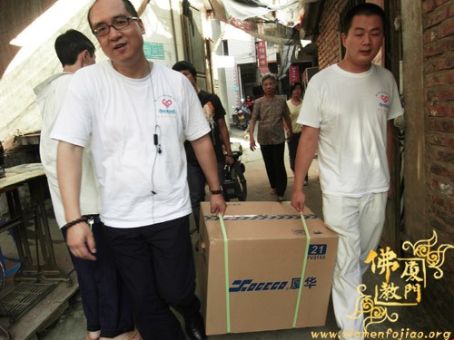 捐赠仪式结束后,36台捐赠电视,依计划由法师带队,分送新店、同安、大嶝、东孚、灌口、霞阳等七个地点的捐赠户,让他们在炎炎夏日里得到一份清凉,一份久违的慰藉,更是一份他们渴望以久的希望;也让他们更近距离地感受到百年奥运的激情,民族的振兴,国家的兴旺发达,触摸到时代发展的脉搏;让他们从心底里感恩于这个伟大的时代,感恩于爱的力量;让爱心传递、感染他们淳朴的心灵,播撒菩提慈悲的种子;让佛光普照,化娑婆为净土。但愿众生蒙佛力加持,滋润、沐浴于和谐的春风里,与光同尘,与日同辉!