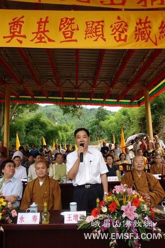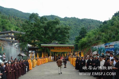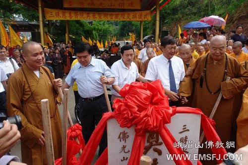 庆典由四川省佛教协会秘书长王立军主持,台湾佛光山开山宗长星云大师、国际佛光会中华总会会长心定法师、秘书长慈容法师以及各佛光分会会长等出席了庆典。四川省宗教局王增建局长、杨伯明副局长、周小鹰处长和四川省佛教协会会长永寿法师、副会长宗性法师、广成法师等参加了此次庆典。参加此次胜会的还有成都市宗教局、彭州市政府、彭州市宗教局等相关领导。