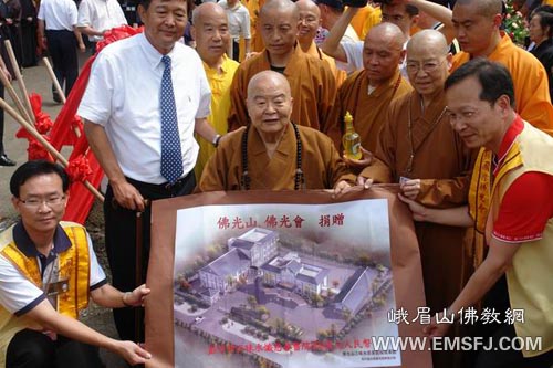 “三昧慈善医院” 地址设在彭州市三昧禅林,将由台湾佛光山、佛光会捐资300万元人民币修建。医院建成后将用于救济苦难有情,赠医施药,愿诸众生离苦得乐,身心康健。充分彰显了中华民族“一家亲、手足情”,更体现了佛陀“无缘大慈,同体大悲”的本怀。