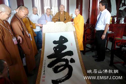 四川省佛教协会副会长、四川尼众佛学院副院长如意法师向星云大师一行详细介绍了佛学院的教学和建设等情况,并祈请星云大师普洒甘露法雨,在大雄宝殿举行佛学讲座,为大众作开示。随后星云大师为四川尼众佛学院题字——“立志飞扬”,鼓励佛学院学僧:精勤学修,广作佛事,弘法利生,当仁不让!