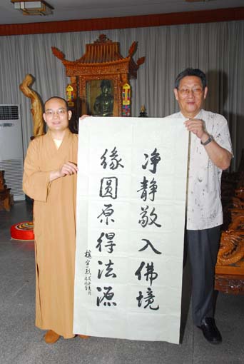 楼教授以一幅妙对"净静敬入佛境,缘圆元得法源"来引导在场的所有听众。此联意妙音谐,契理契机,真是天成绝对。他简析到,若能做到三境,自然会渐入佛之境界。若能众缘和合、圆融无碍、归元不二,那就得入法源。