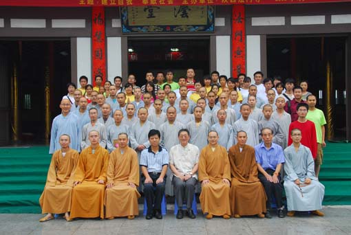 最后,为纪念这个意义深刻的讲座,包括福慧营活动的义工菩萨、佛学院的全体师生在内的所有人,集体在法堂前合影留念。