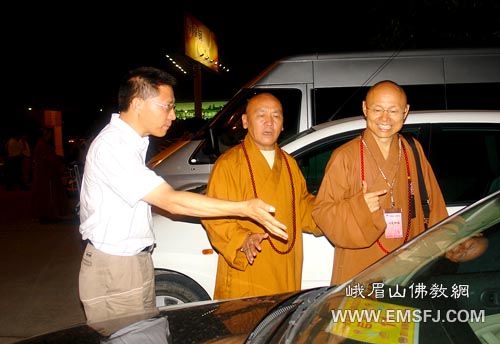 广成法师在机场迎接心定法师一行