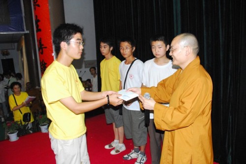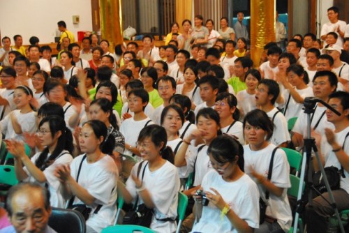 2008年7月21日上午8:00,众位法师在法堂为学员和义工们送行,法师们贴心的嘱托,殷切的期望,让在场的人们深受感动,许多人流下感恩、激动的眼泪,纷纷发愿一定会常回“家”,享受家的温馨,体会家的安详。