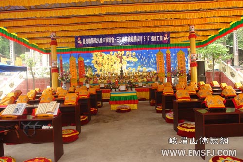 7月20日,四川省彭州市三昧禅林设供焚香,隆重举行“慈悲三昧水忏”大法会,法会礼请台湾国际佛光会中华总会会长心定法师主法,祈请三宝加被,忏除众生罪业,敬为5.12汶川大地震遇难同胞追荐超度,为生者祈福迎祥。