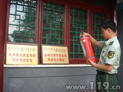 赤峰市翁旗消防监督人员对梵宗寺进行消防安全检查