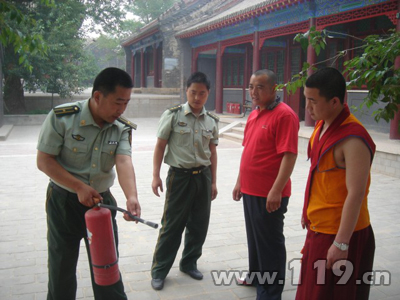 消防监督执法人员还为寺内僧人讲解了一些简单实用的消防安全知识,并且对寺院防火工作提出要求。