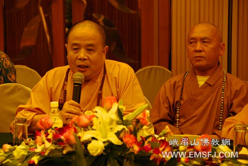 座谈会由四川省佛教协会副会长宗性法师主持,星云大师在座谈会上为大众就当今时代应如何更好地弘扬佛教文化,扩大佛教的影响,为更多的众生做好服务工作等作了慈悲开示;并介绍了自己在台湾60年来的弘法历程,鼓励大众在弘法利生道路上要有为法忘躯舍我其谁的精神,发菩提大心,使佛光普照三千界,法水常流五大州!