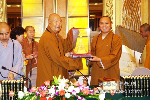 星云大师代表佛光山向四川峨眉山佛学院赠送《佛光大藏经》