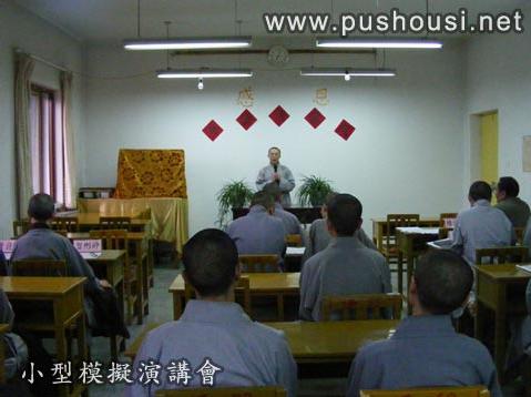 普寿寺有三位法师报名参加。她们在如瑞法师的鼓励和开导下,欢喜地投入了演讲的准备。因时间有限,且出家已久,英语不常用,已经生疏了。如瑞法师特地从太原师范请来陆永庭教授给大家辅导。陆老师非常地负责和尽心,从讲稿文字的修改到发音的校正,以及口语和听力的训练,均给予了耐心地指导和帮助。三位同学也很认真努力地学习。所以在不到一个月的时间里,她们的英语水平有了很大的提高。真是功夫不负有心人。