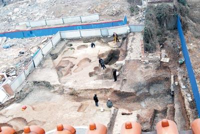 昨日,出现在记者面前的大报恩寺地宫之上的塔基并没有太多的华丽,整个塔基显得坑坑洼洼,而地宫仍被一层厚厚的泥土包裹,位于中华门外的这处大报恩寺遗址,已被挡板围起来,非关联人员不允许进入。