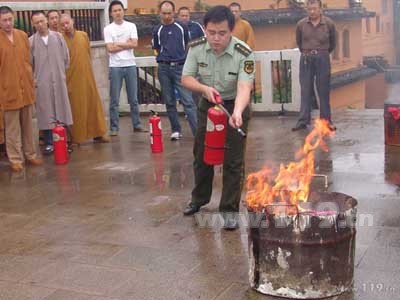 在检查过程中,检查小组着重对各个宗教场所的疏散通道、疏散楼梯和安全出口是否畅通,疏散指示标志是否完好,消防安全设施、灭火器材配备是否齐全、消火栓系统工作是否正常、消防安全台帐是否完备、电气线路排放是否规范等情况进行了认真细致的排查。并抽查了一部分宗教人士的消防安全知识掌握和实地操作灭火器材的情况。从检查的结果来看,宗教场所消防硬件设施令人欣喜,灭火器材都能按照要求配备放置,电气线路敷设合理,消防台帐完备。但在检查的同时也曝露出“软件”上的不足,宗教人士消防安全知识掌握不够,操作灭火器材不熟练。针对出现的问题,消防监督人员积极与宗教场所的有关负责人联系,定期为宗教人士开展消防安全知识讲座,在宗教场所举办消防演练。从源头上预防和控制影响消防安全的各种因素,确保宗教活动场所的消防安全稳定。