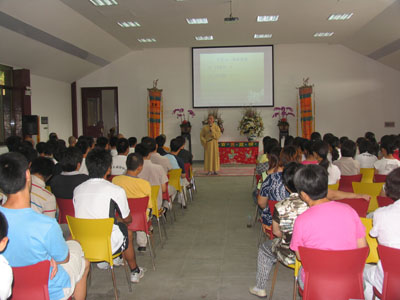 参加演出的演员,皆为护法居士,佛学夏令营营员;演出现场,掌声不断,