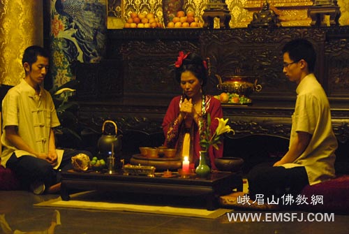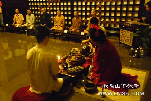 供花、敬香、礼佛、结印……将这全部的专注与虔诚融于水、融于器、融于茶,加上天籁般的佛乐,行云流水般的动作,令茶供会更加意境深远、清净庄严。