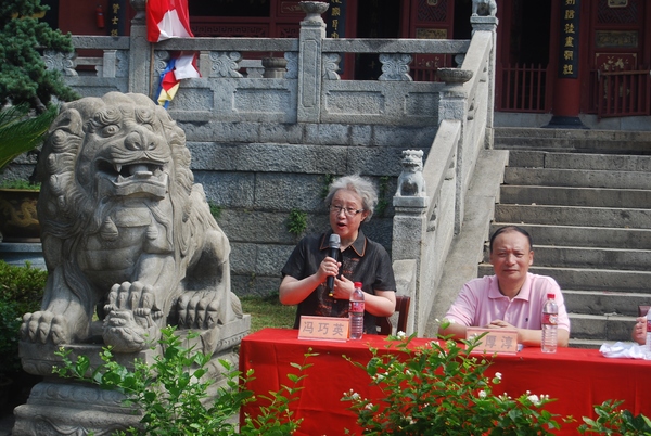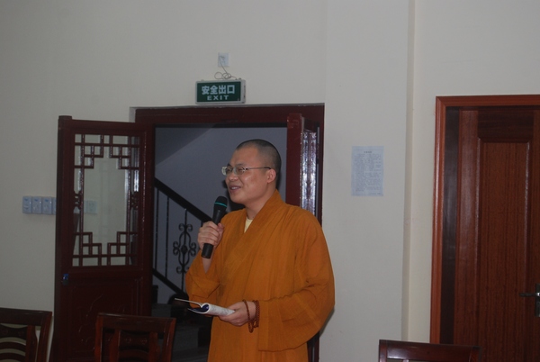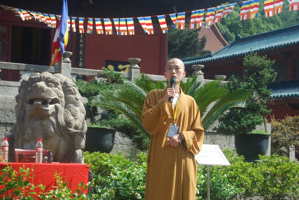 东林寺大知客道岸法师给营员讲解寺院规矩