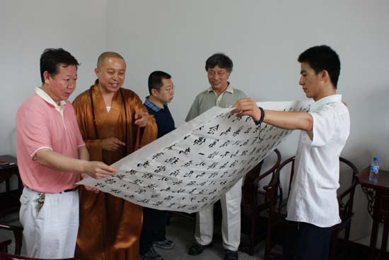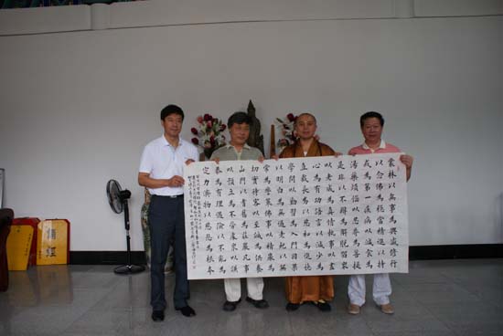 6月29日上午,天津市佛协理事左建伟居士陪同书法家李德海先生来到大悲禅寺,向该寺捐赠其受方丈和尚委托抄录的《百丈禅师丛林二十要则》。