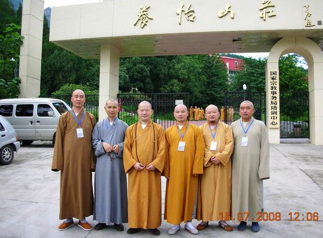 参加读书班的六位法师,从右起分别是演觉、法云、圆悟、圣君、宽祥、法船