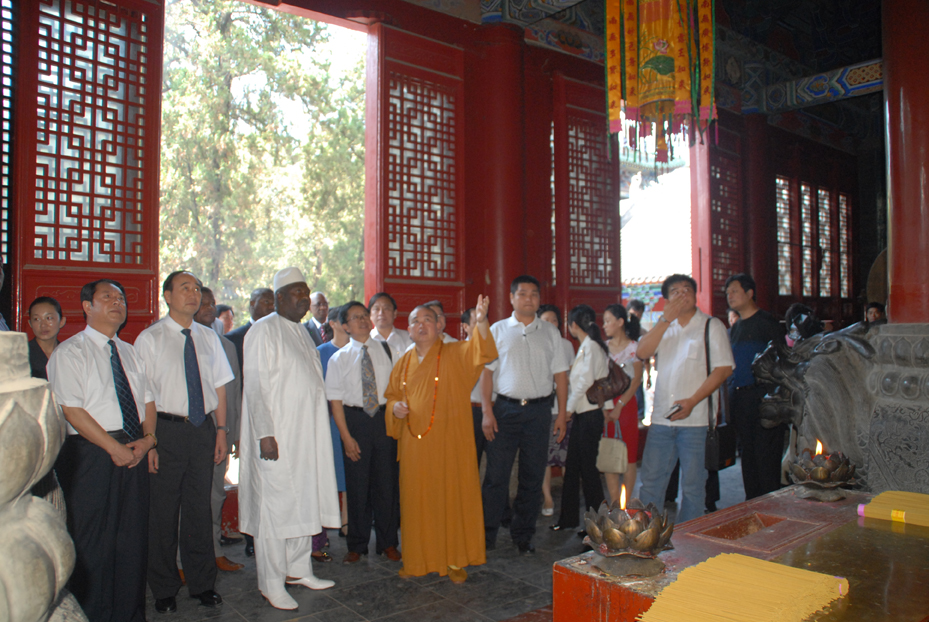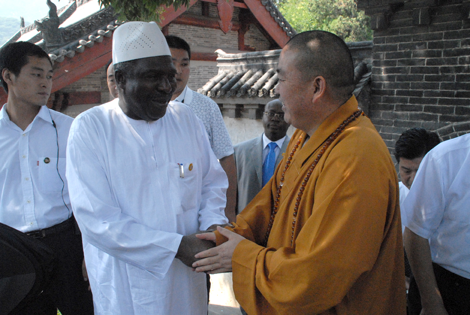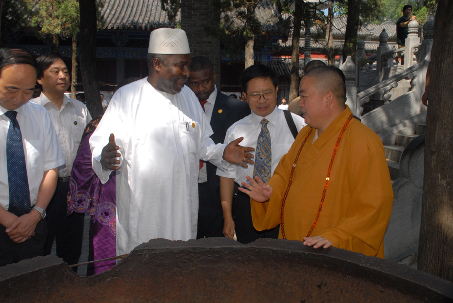 7月16日几内亚议长阿布巴卡尔·松帕雷一行参观少林寺,受到少林寺释永信方丈的热烈欢迎,在释永信方丈的陪同下阿布巴卡尔·松帕雷议长参观了少林寺常住院,并观看了少林寺僧人演练少林功夫。随后在方丈室,释永信方丈向阿布巴卡尔·松帕雷议长介绍了少林寺的历史以及少林寺与非洲朋友文化交流的情况,阿布巴卡尔·松帕雷议长表示:少林寺是个传播友谊的地方,这里的建筑、塑像和碑刻都给我留下了深刻的印象,我希望少林寺能够派弟子到几内亚去,把少林文化传播到几内亚。参观结束后阿布巴卡尔·松帕雷议长在留言簿上写到:我很荣幸能够了解到古老中国文化的另一面,少林功夫已经成为世界文化遗产的一部分,几内亚将努力接受少林功夫的影响和熏陶,非常感谢。