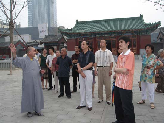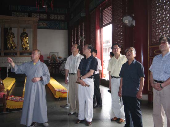 2008年7月2日下午14:20分,天津市河北区工会副主席李春雪一行15人到大悲禅院参观,受到了该寺僧众的热情接待。在大悲禅院法师的带领下,李春雪副主席一行参观了大悲禅院。