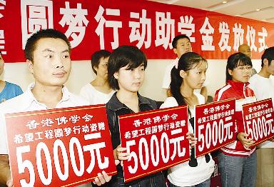 2008年8月27日上午,香港佛学会、山西省希望工程圆梦行动助学金发放仪式在太原市举行。香港佛学会为山西省15个县(市、区)32名贫困大学新生捐赠的16万元,受助的贫困大学新生每人获得5000元助学款及棉衣、毛衣、手套等衣物。