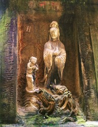 邂逅巴中石窟是在二○○六年的夏天,当时从朋友处获悉巴中有盛唐雕凿成的佛像,便慕名前往。映入眼帘的景象实在令人惊叹:这里的造像既有和谐安详的佛家气象,又有赏心悦目的艺术之美。虽历经沧桑,但依然色彩鲜艳,栩栩如生。当时我就有了用镜头将这些佛教艺术精华呈现给世人的欲望。经过两年的筹备,今年终于得偿所愿。