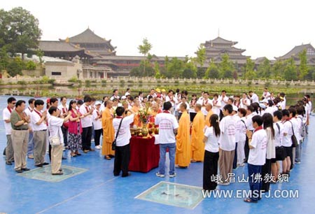 2008年8月23日,“缘聚峨眉山,携手菩萨行”夏令营即将圆满之际,在峨眉山大佛禅院举行了放生法会。