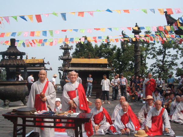 2008年8月22日,韩国庆北道法云法师一行近百人到安徽省池州市九华山参观礼佛。