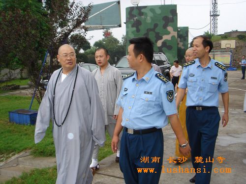 2008年7月31日,八一建军节前夕,麓山寺方丈圣辉大和尚带领监院永兴法师、都监觉空法师、知客法华法师、常胜法师、书记通振法师等一行到空军岳麓山中心雷达站进行慰问,受到雷达站汪岳站长、李立明教导员的热情接待。圣辉大和尚代表麓山寺祝雷达站官兵节日快乐并赠送慰问礼品,以表军民鱼水之情。汪岳站长、李立明教导员邀请圣辉大和尚一行在将军楼座谈交流。