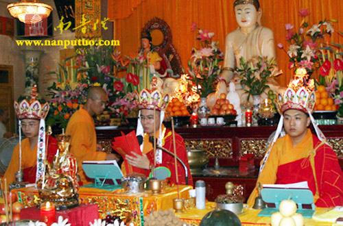 2008年8月15日,恭逢农历七月十五盂兰盆节,南普陀寺在上午隆重举行了盂兰盆法会之后,于当日晚6时许在法堂施放五大士瑜伽焰口,法会礼请本寺圆满法师、常明法师、演双法师、本藏法师、宗智法师为金刚上师。