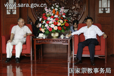 国家宗教局一司副司长兼中华宗教文化交流协会副秘书长刘威、国家宗教局外事司副司长赵磊、一司副司长(挂职)杨卓玛陪同参加会见。