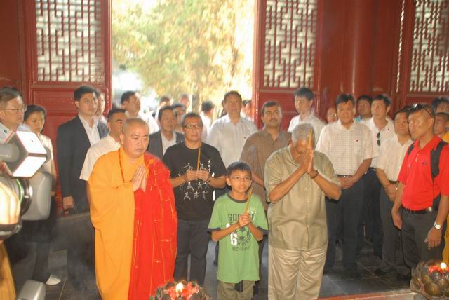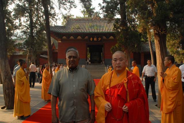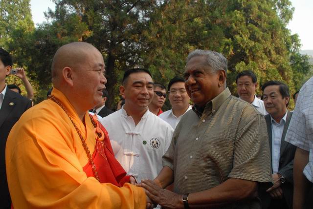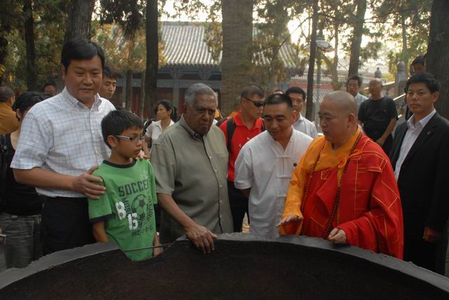 17日新加坡总统纳丹访问少林寺,下午17时,纳丹总统一行抵达少林寺,纳丹刚下车走上红地毯,便受到少林寺方丈释永信及寺僧们的欢迎。