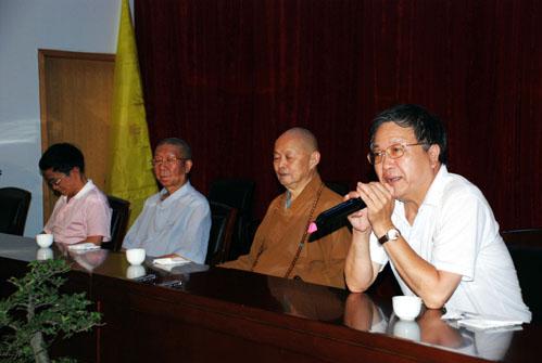 下午,吴言生老师以《色空不二,悲智双运》为题演讲,指出《心经》中的“色即是空”即是放下执著,从有入空,看透幻想,觉悟人生。“空即是色”就是担起责任,从空出有,珍惜生命,奉献人生。