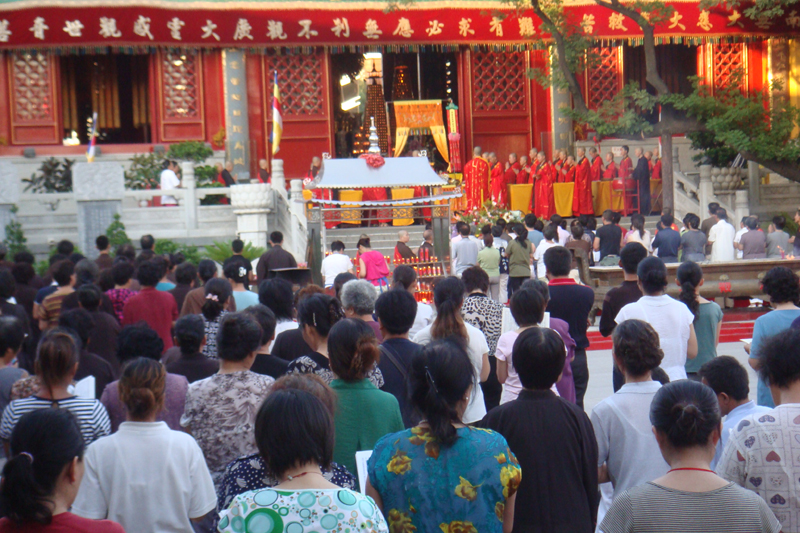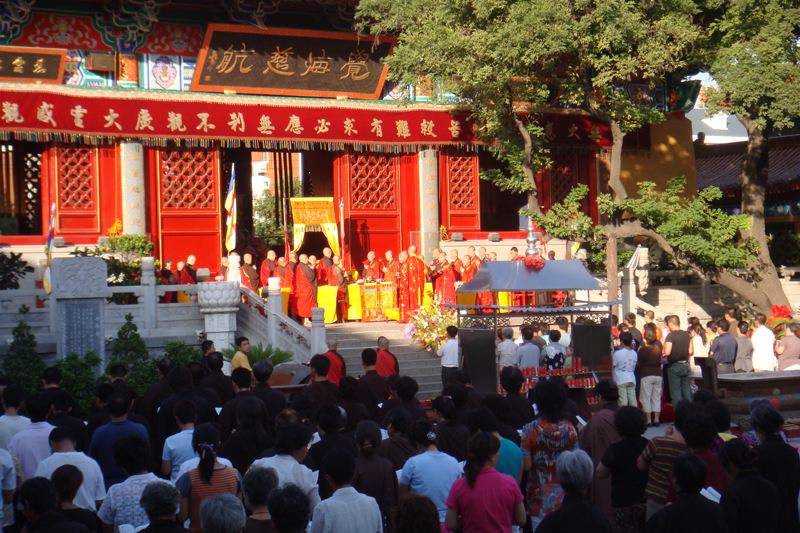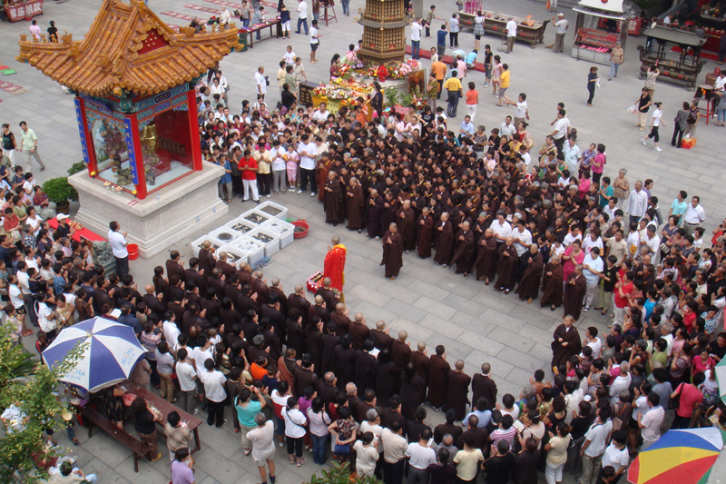 2008年8月15日,天津荐福观音寺隆重举行盂兰盆节大法会。诵《盂兰盆经》、设盂兰盆供、大放生仪式及大蒙山超度道场。法会如理如法,数千居士善信随喜了全天的法会。
