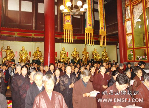 2008年8月15日(农历七月十五日)——佛欢喜日,峨眉山尼众寺院伏虎寺举行了隆重的盂兰盆法会。藉此殊胜因缘,感念三宝恩德,回向十方有情,现生增福添寿,临终径登莲邦。一切佛弟子,应当奉持此法,以报父母长养慈爱之恩。