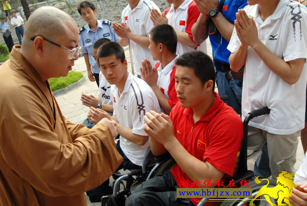 8月13日,中国残疾人轮椅竞速队离开黄石训练基地,前往北京参加奥运会。行前,竞速队全体队员专门到黄石市东方山风景区参观。在弘化禅寺,竞速队队员受到湖北省佛教协会会长、弘化禅寺方丈正慈大和尚的热情接待。