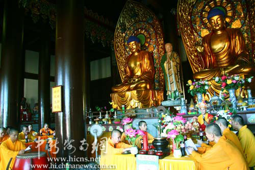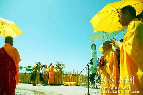 昨天是佛教的盂兰盆节,中国最南端的佛教道场三亚南山寺按照佛教仪规举行祈福法会,祈祷社会和谐,国泰民安,祈祷奥运会圆满成功。现场有一千多信众和游客参加。