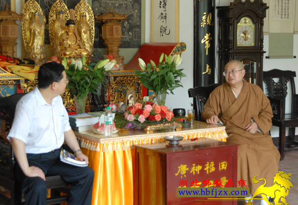 在方丈室接待杨三爽一行