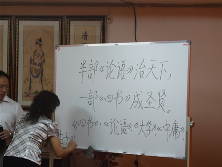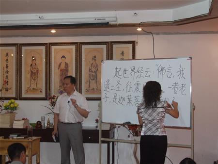 2008年8月7日晚7点半,江西省九江市东林慈善功德会在一楼佛堂为江西省九江市市民举办了一场《论语》讲座,邀请北京净心儒学讲堂张士广教授主讲。