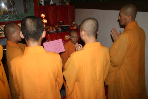 农历七月十五日早上七点半,僧众云集大雄宝殿举行了自恣仪式。随后举行了盂兰盆法会。