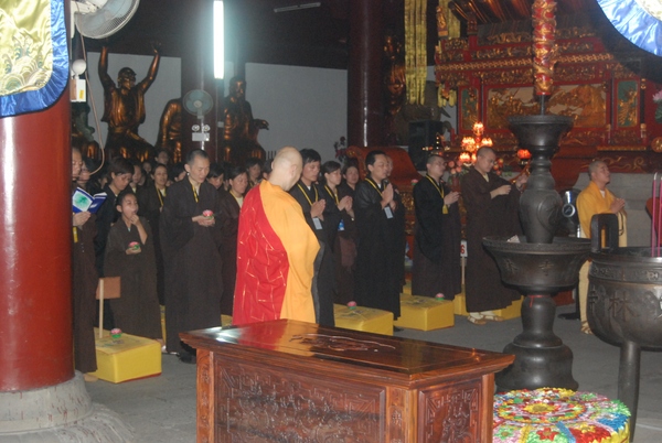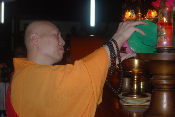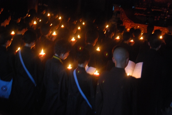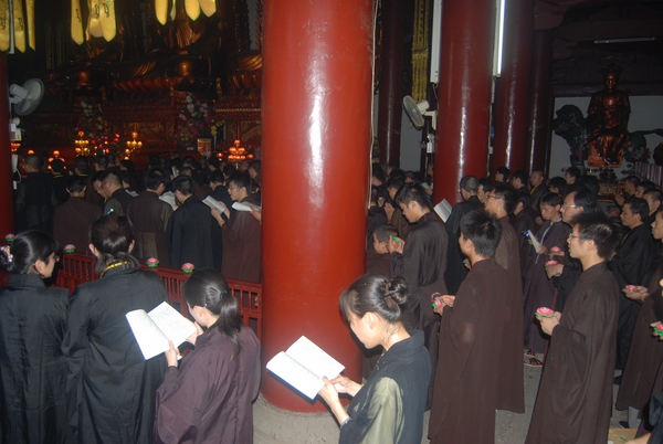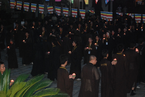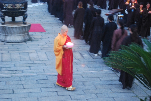 7月27日下午突然天上降下了甘露,给炎热的东林寺带来了一阵清凉,晚上夏令营营员全部集中在大雄宝殿手捧一盏莲灯在大安法师的主法下,诵完了一部《阿弥陀经》后接着是弥陀赞,之后在弥陀的圣号中点燃了手中的莲灯,点燃了我们心中的智慧之灯、自性之灯!