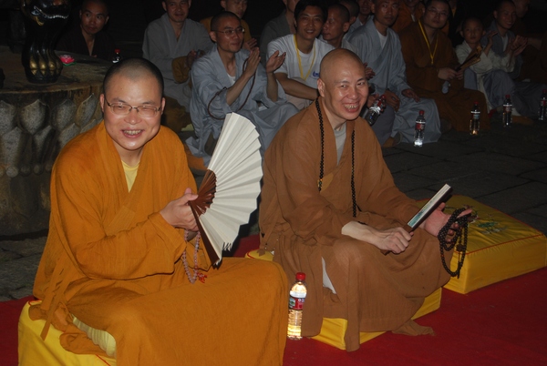 点灯法会接受后大家相聚在大雄宝殿前广场上,欣赏净土文化夏令营音乐晚会,在晚会中间营员们也欢喜的上台表演,以音声做佛事来供养诸佛菩萨和诸位法师们!